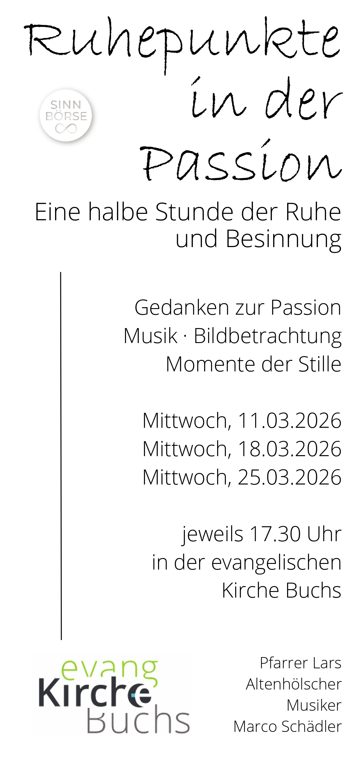 Mittwoch, 11. März 2026 17.30 Uhr in der Kirche - Gedanken zur Passion, Bildbetrachtung, Musik, Momente der Stille